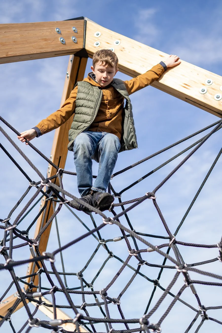 Enjoy peaceful net play at this new playground with a stunning view of the San Francisco Bay, equipped with the Cube L from Berliner's Joe Brown collection. The spacial net offers kids maximal development opportunities encouraging them to climb to new heights and explore the realms of risk, failure, and mastery.